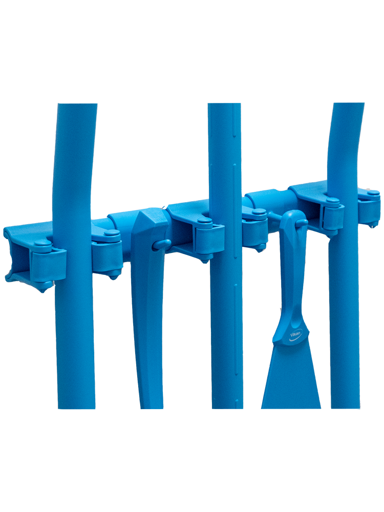 Vikan hygieniskt väggupphäng med en flexibel lösning för förvaring av redskap i alla områden. Finns i flera färger.